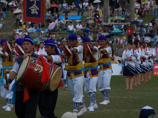 After the beach on Saturday, we headed into Okinawa City for a beer festival we had heard about. I have to admit, when I heard about a beer festival, I was expecting a small street festival with maybe a few hundred people. I could not have been more wrong! The Orion Beer Festival 2011 was held at the Koza Athletic Park, which is huge, and there were thousands of people there. Dozens of food booths with foods that looked and smelled incredible, game booths where you could play games and win a prize, a stage with local pop and rock groups playing all day and into the evening, and a fireworks show to end each day of the festival. Talk about experiencing the local culture! The best part of the festival (for me) was what took place in the stadium. This was where the annual Okinawa Zento Eisa Matsuri, a competition between Eisa dance troupes from all around Okinawa, was taking place.